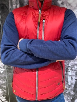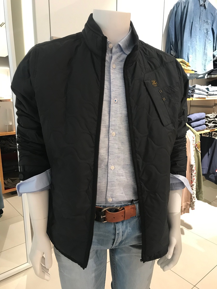 sportliche gesteppe Freizeitjacke, dunkelblau und Hemd Langarm, Baumwolle, Button down, feiner unregelmässiger Querstreifen